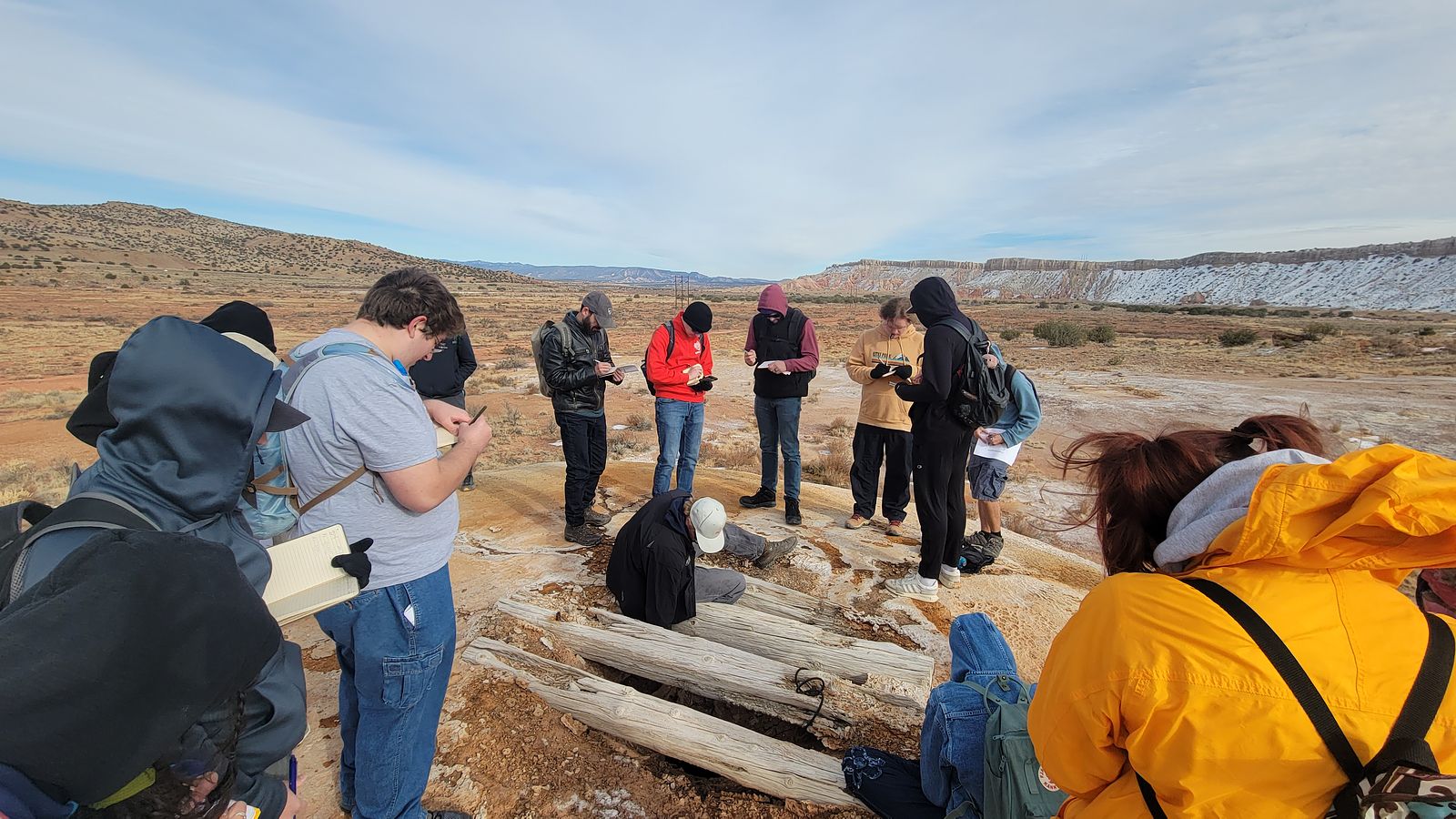 Students recording spring data during UNM's New Mexico Field Geology - San Ysidro, New Mexico