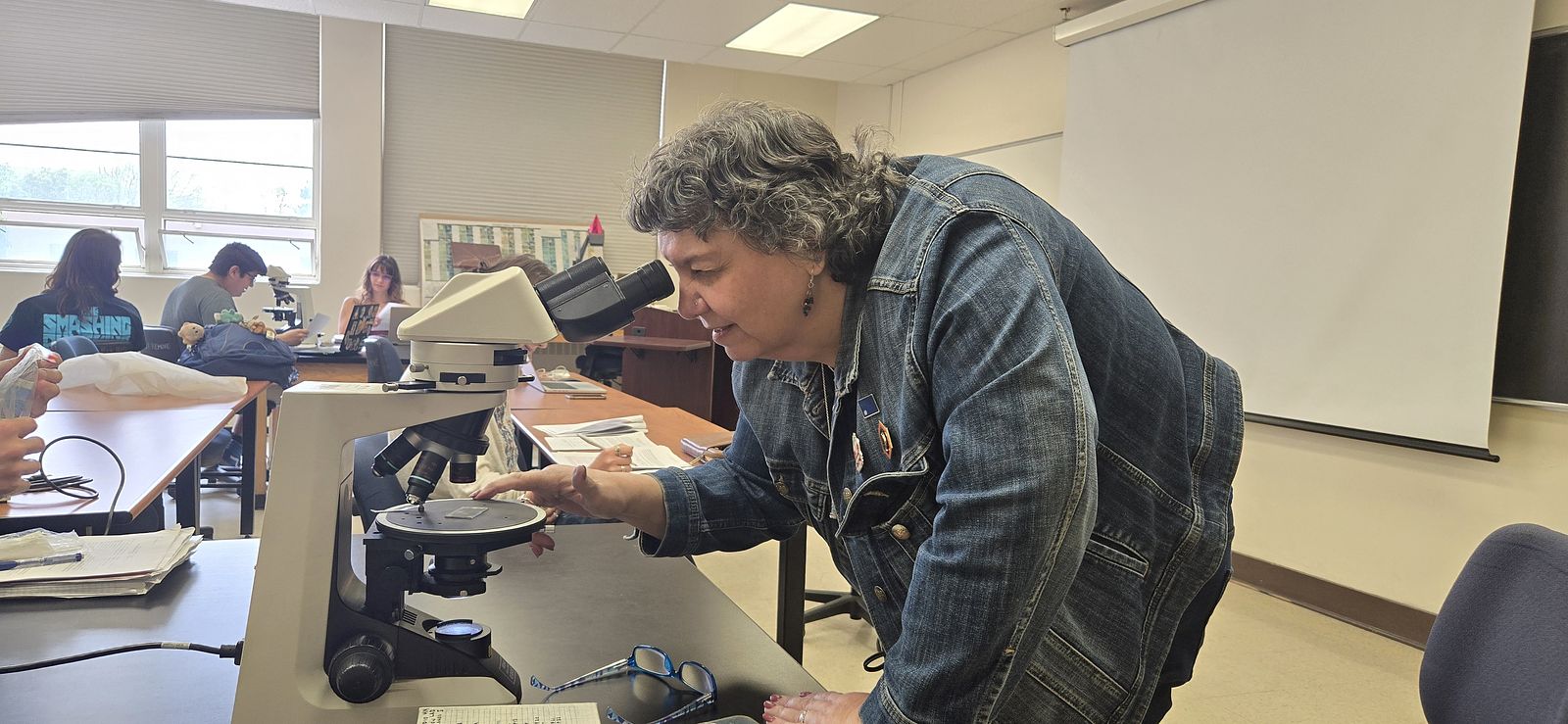 My mom's first time using a petrologic microscope!